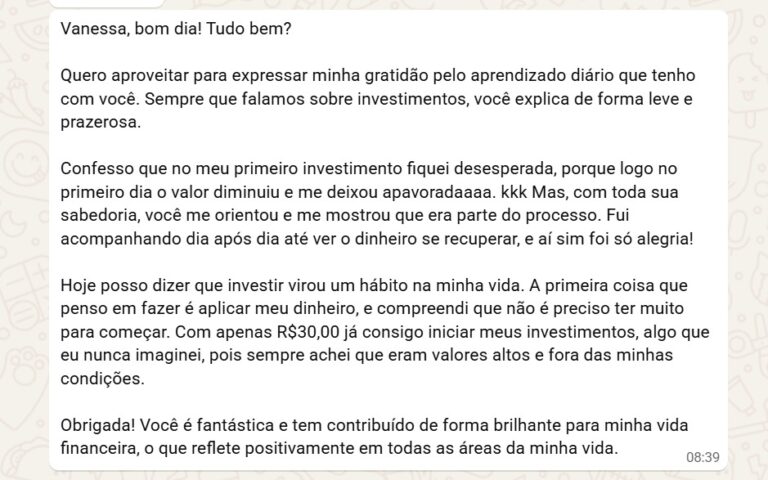 Com uma trajetória profissional sólida de mais de 10 anos, Vanessa Fonseca destaca-se como administradora e educadora financeira. Sua expertise abrange a gestão, finanças corporativas e consultoria estratégica, com um histórico comprovado de atuação tanto em grandes corporações quanto no apoio direto a empresários.